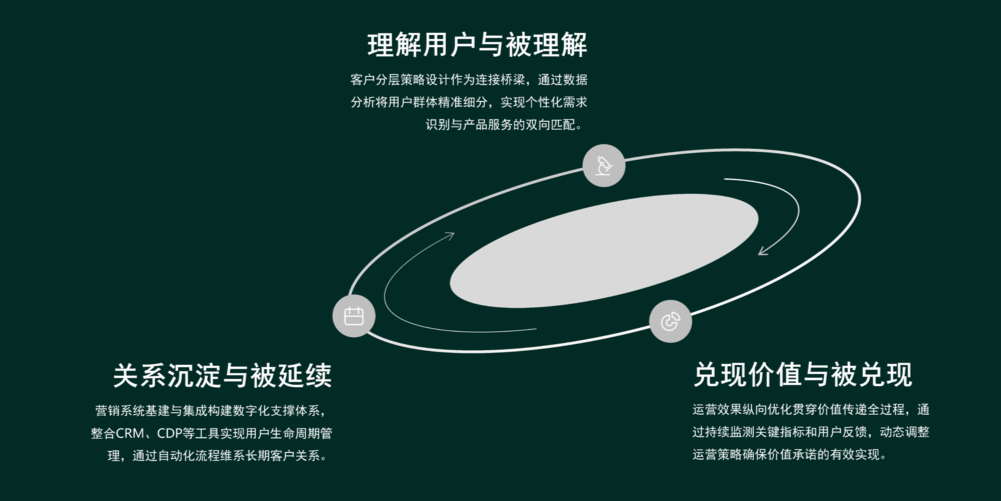 我们不交付华丽的PPT和文档,我们深度融入运营环节,关心和落地企业客户运营过程中的每一个重要时刻;